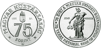 75th ANNIVERSARY OF BIRTH FOUNDATION OF THE NATIONAL BANK OF HUNGARY - Ag (silver coin)
