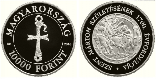 Budapest, 2016. július 8. – A Magyar Nemzeti Bank Szent Márton születésének 1700. évfordulója alkalmából 10 000 forintos címletű ezüst és 2000 forintos címletű színesfém emlékérmét bocsát ki 2016. július 9-én, melyek különleges, ún. mikroírással készült biztonsági elemet is tartalmaznak. Az ezüst és a színesfém pénzek eltérő érmeképpel jelennek meg. Az egykori Savariában (Szombathely) született Szent Márton mindmáig a jólelkűség, a felebaráti szeretet, az elesettek segítése, a szolidaritás és az egyszerűség példaképe. Európa egyik legnépszerűbb szentjeként tisztelik ma is.
